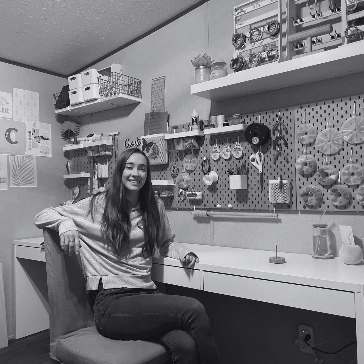 soon developed into something bigger. At 16, with my dad's encouragement and help, I took my first step into entrepreneurship by opening an Etsy shop. My first workspace was the floor of my bedroom – a creative chaos of beads, strings, and shipping supplies where each order was carefully crafted and packaged with love. As my little business grew, so did my needs. A small desk replaced my floor workspace, but I quickly outgrew that too...