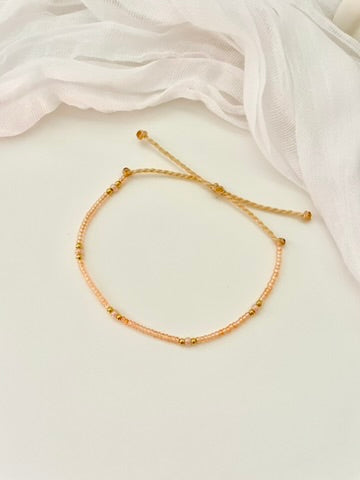 • SMALL: approximately 4.5 inches beaded section + adjustable strands 2.5 inches on each side