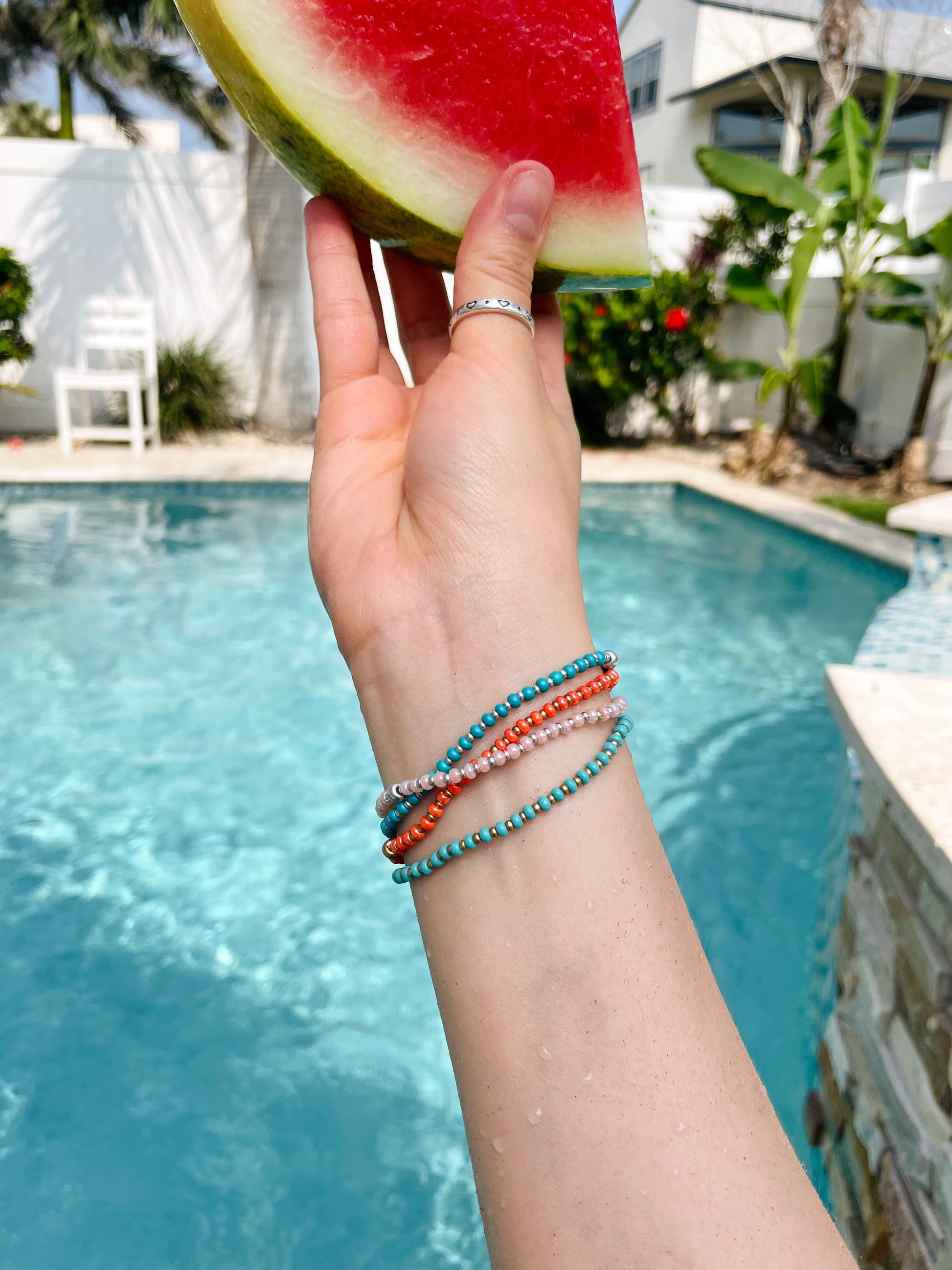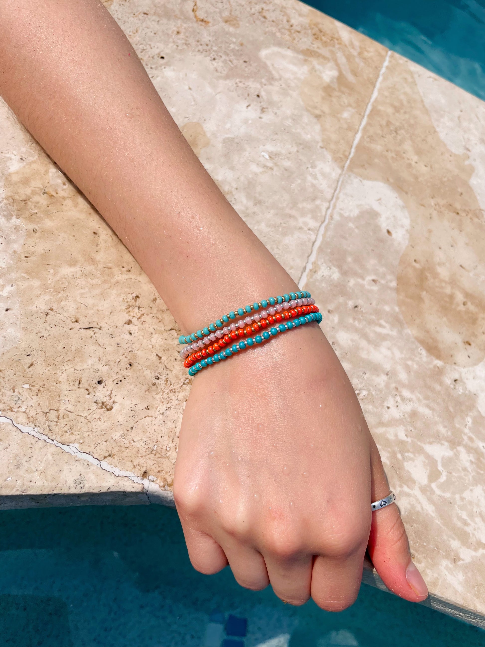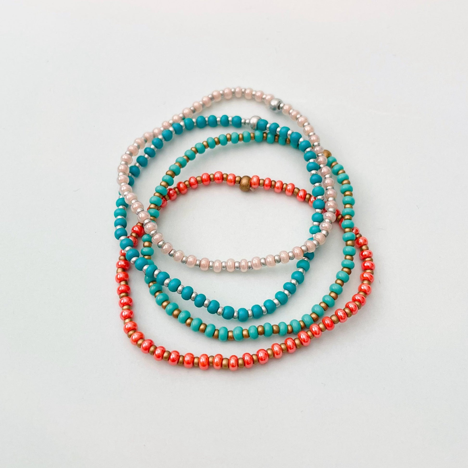 These beachy beaded stretch bracelets are perfect for any occasion! They are made with high-quality beading elastic so they are easy to slip right on your wrist. Choose your favorite color or get the full set option!