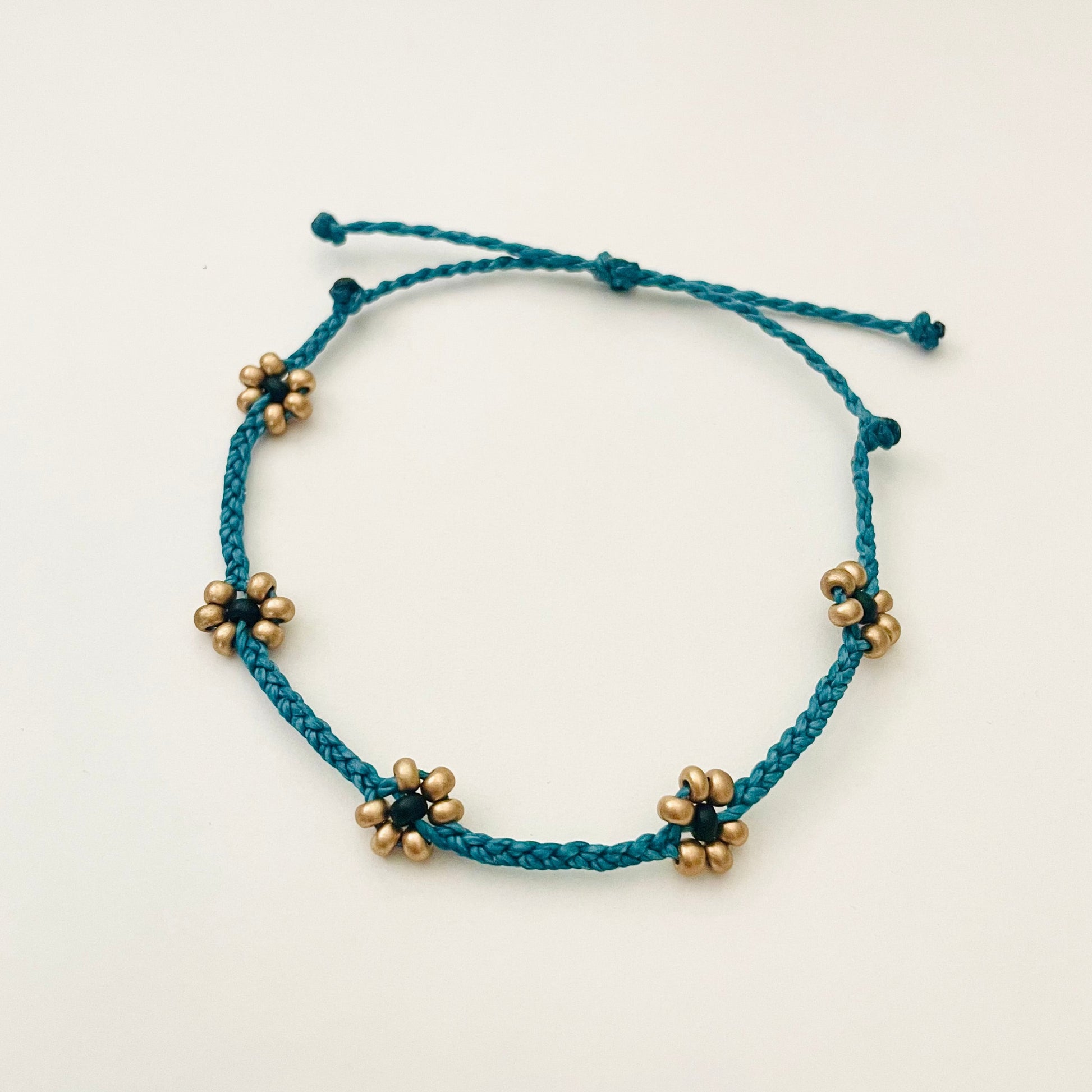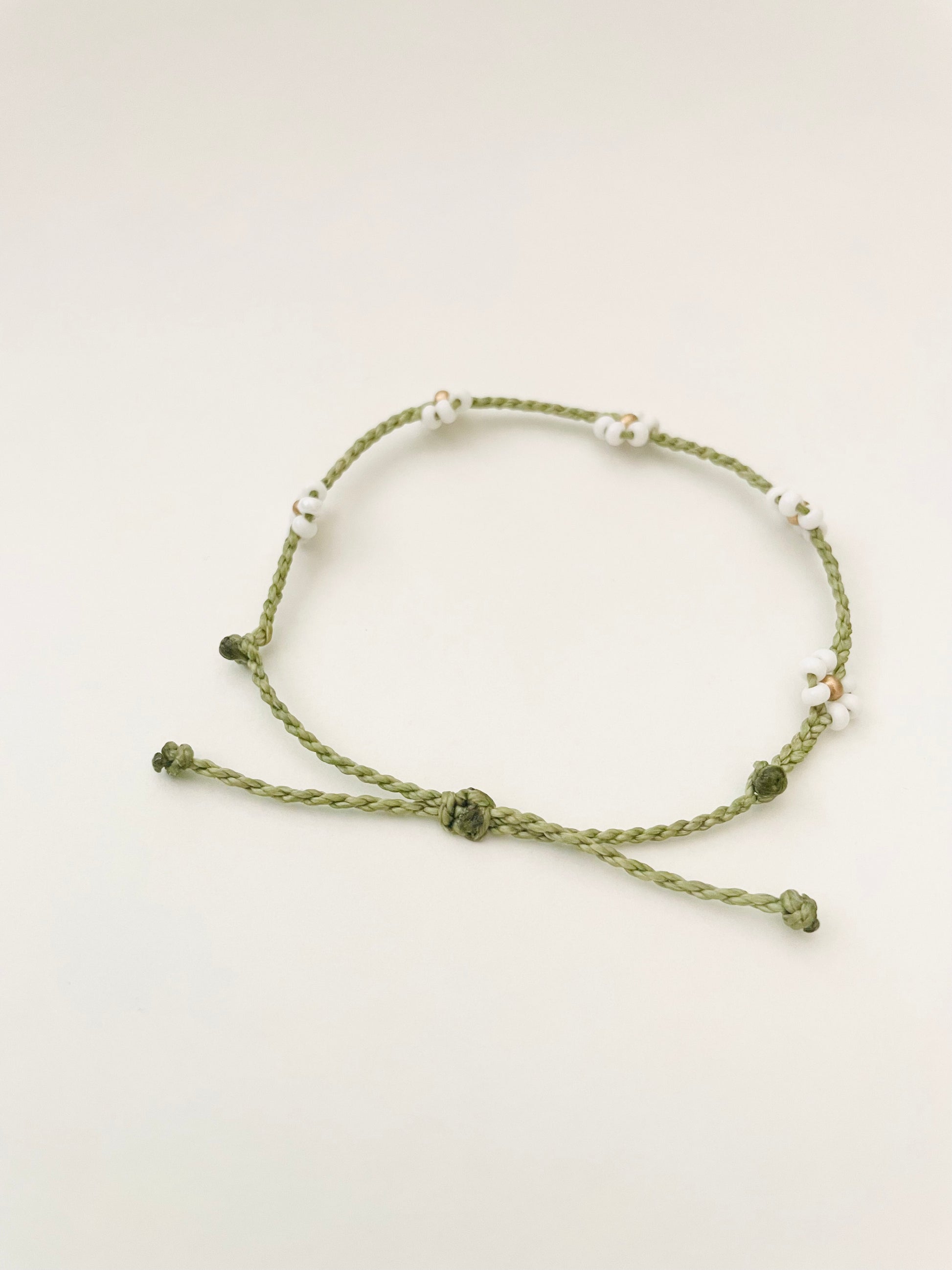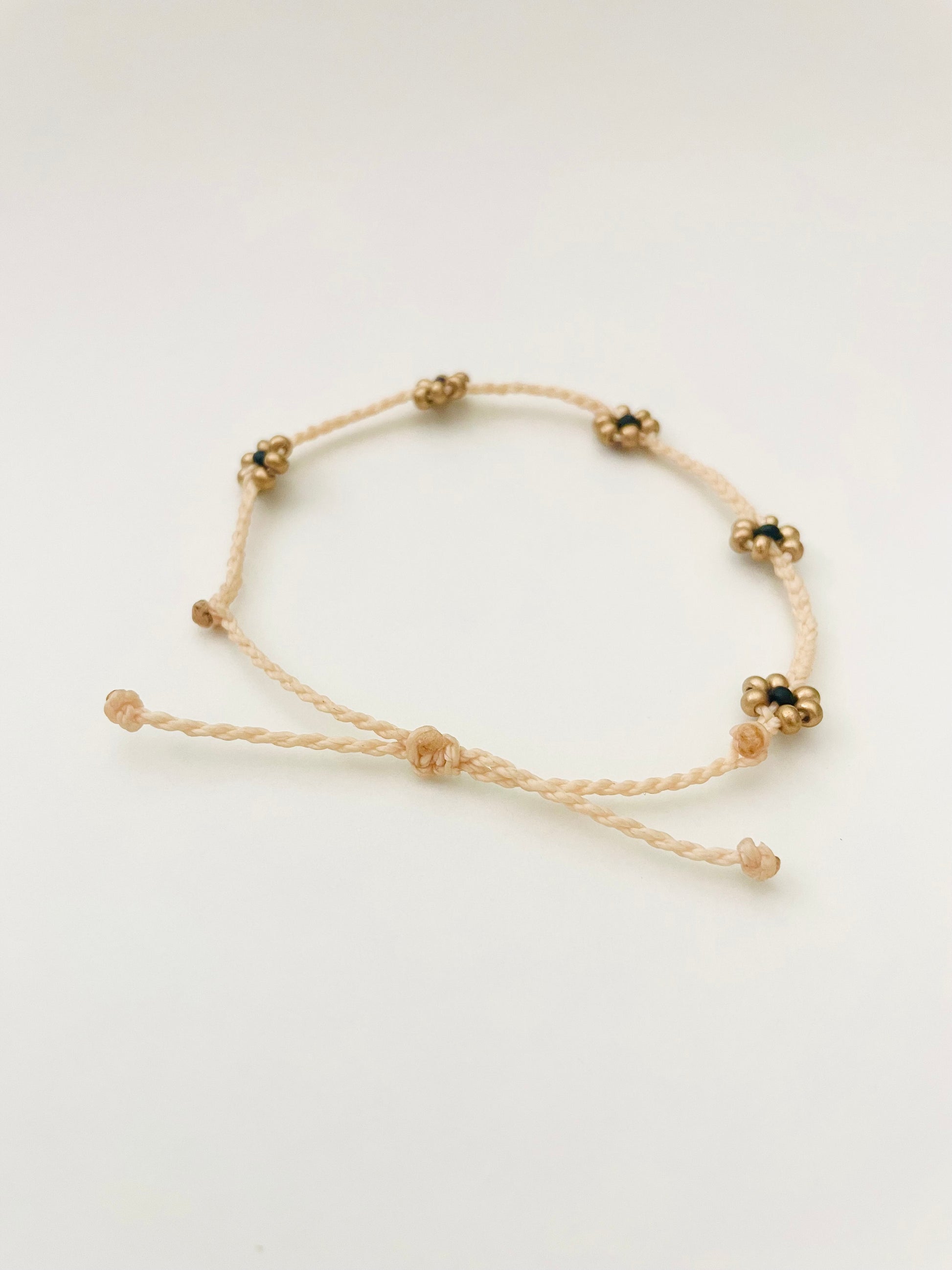 These super cute daisy bead bracelets are adjustable to fit most wrist sizes! They are made with waterproof wax-coated polyester cord and are great for everyday wear. Stack them with other bracelets, or wear them by themselves!
