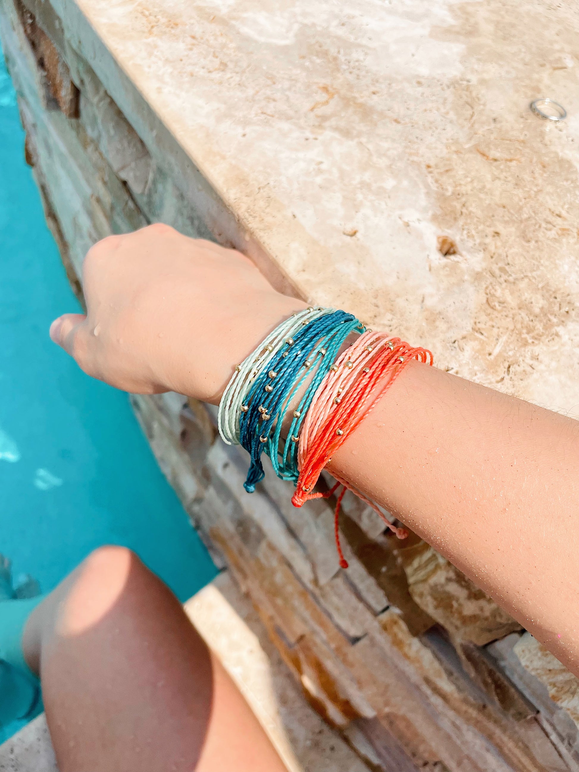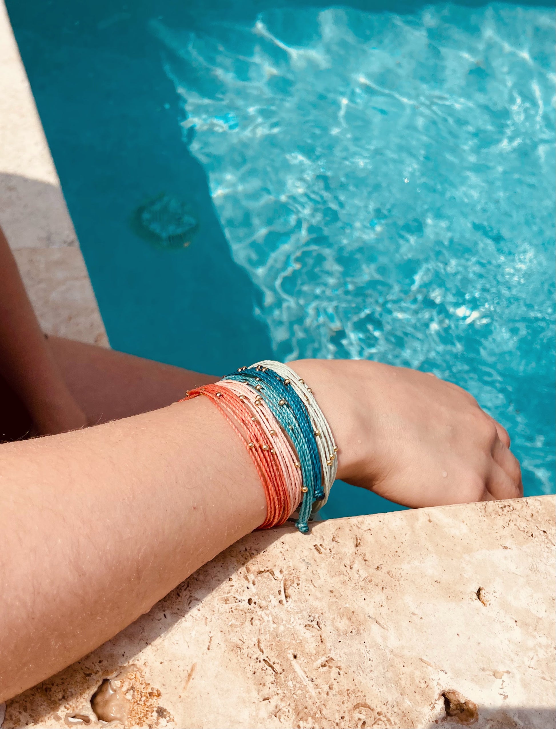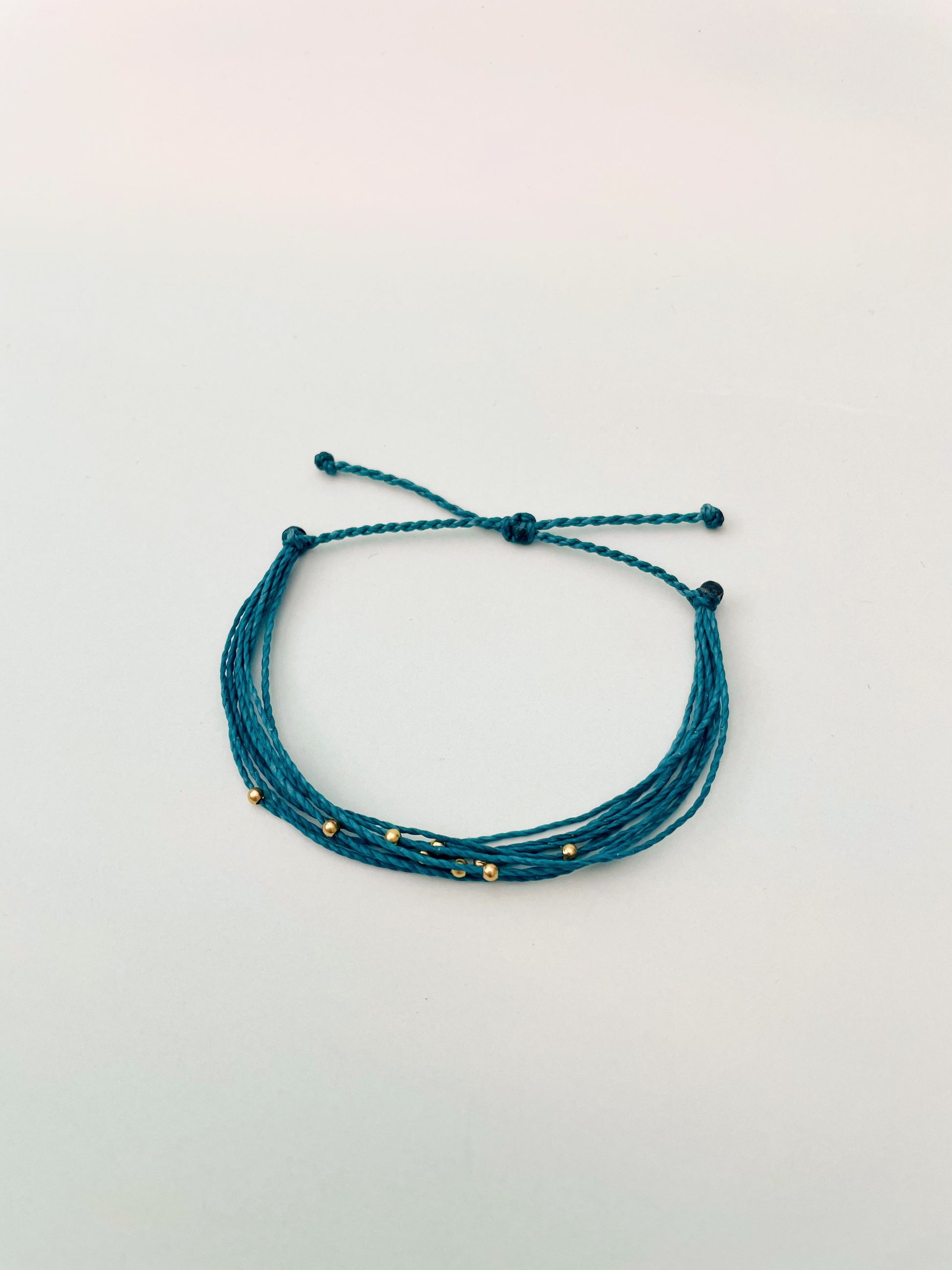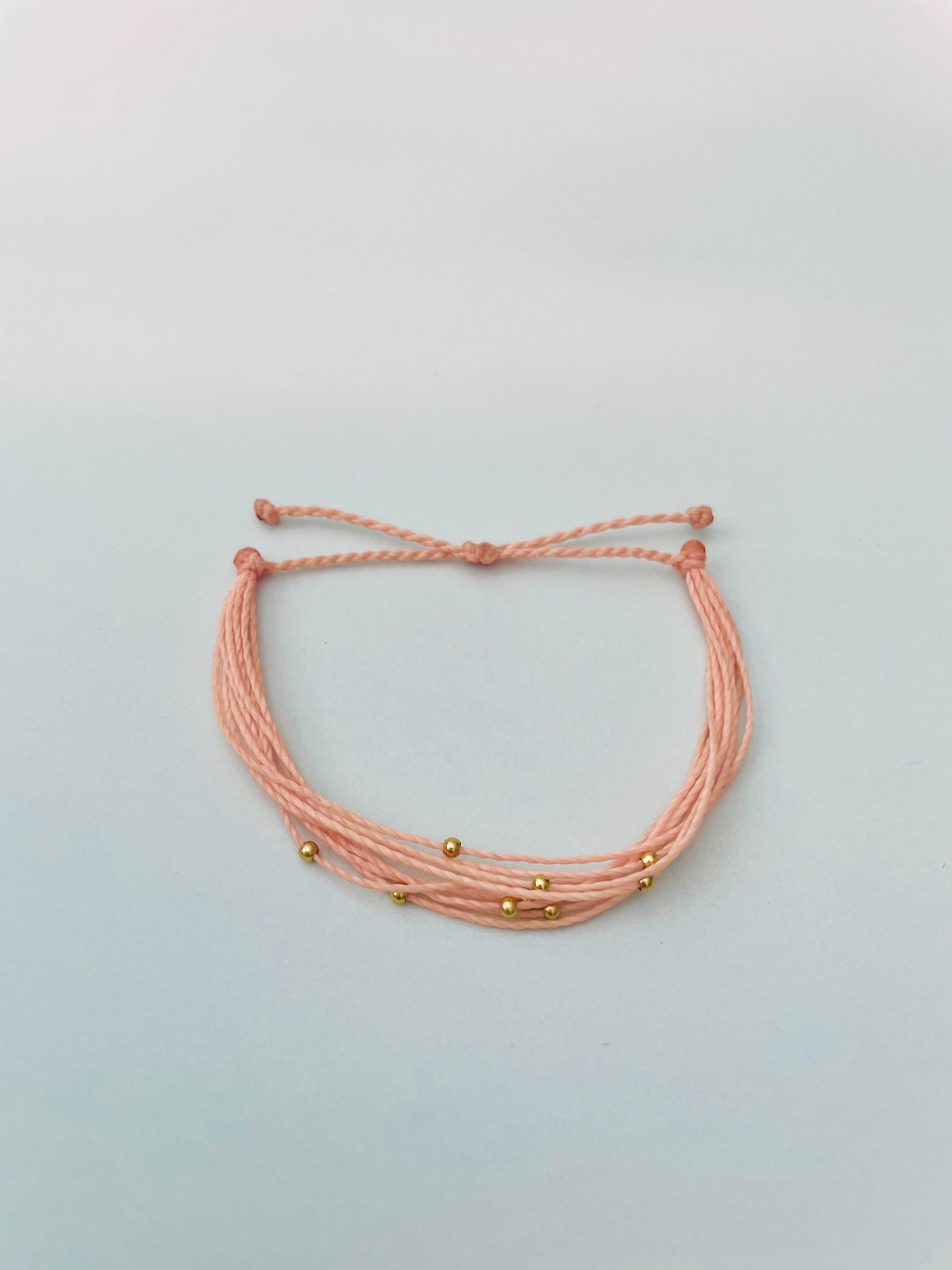 These cute & simple string bracelets are made with waterproof wax-coated polyester cord & gold-filled beads. They are also adjustable to fit most wrist sizes and are perfect for everyday wear!