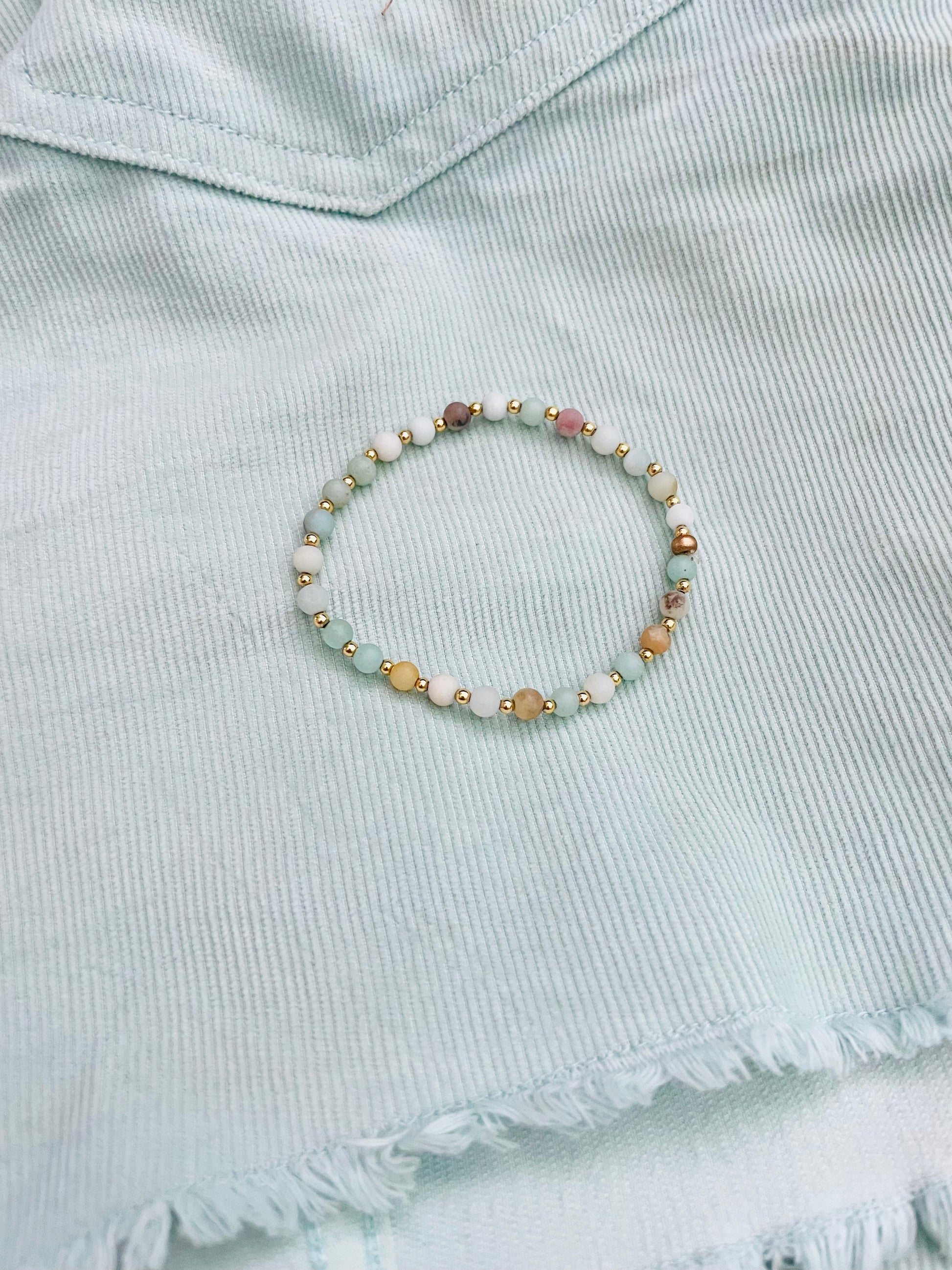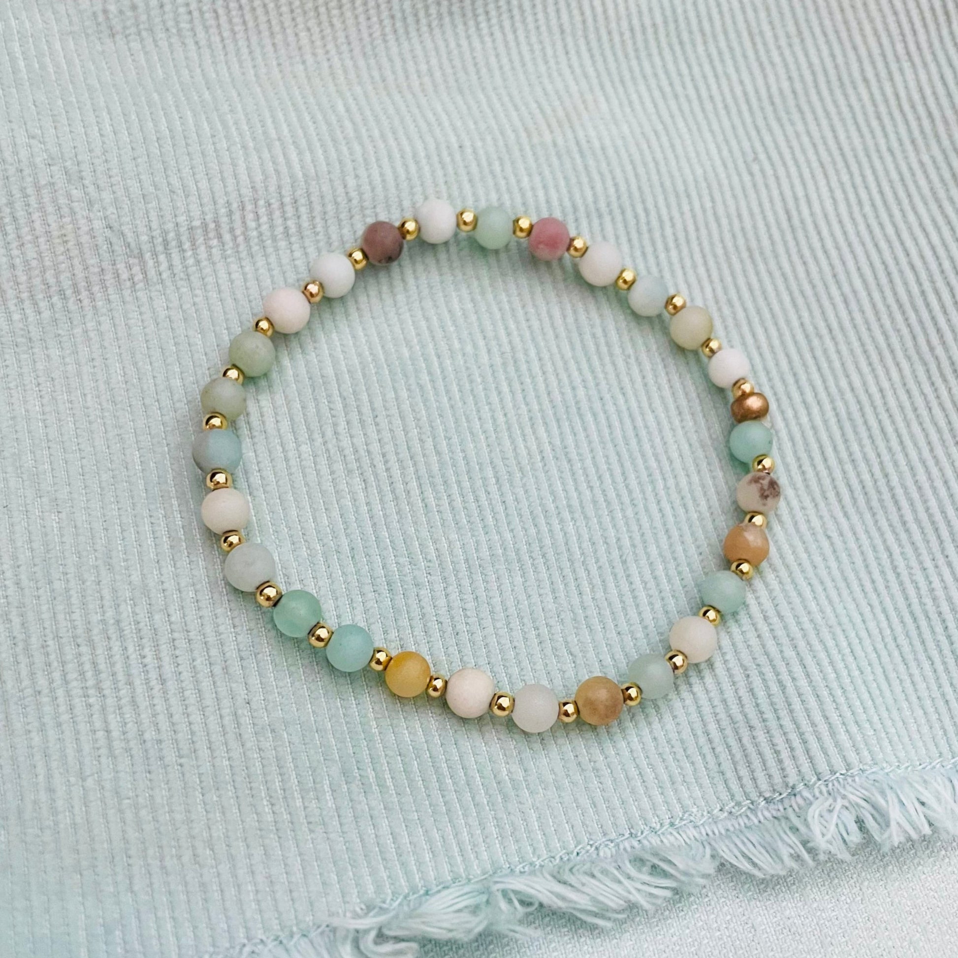 Gold Filled Gemstone Bracelet for Women Beaded Stretch Bracelet Dainty Minimalist Jewelry Handmade Stretchy Bracelet Small Bead Bracelet