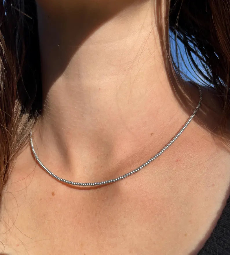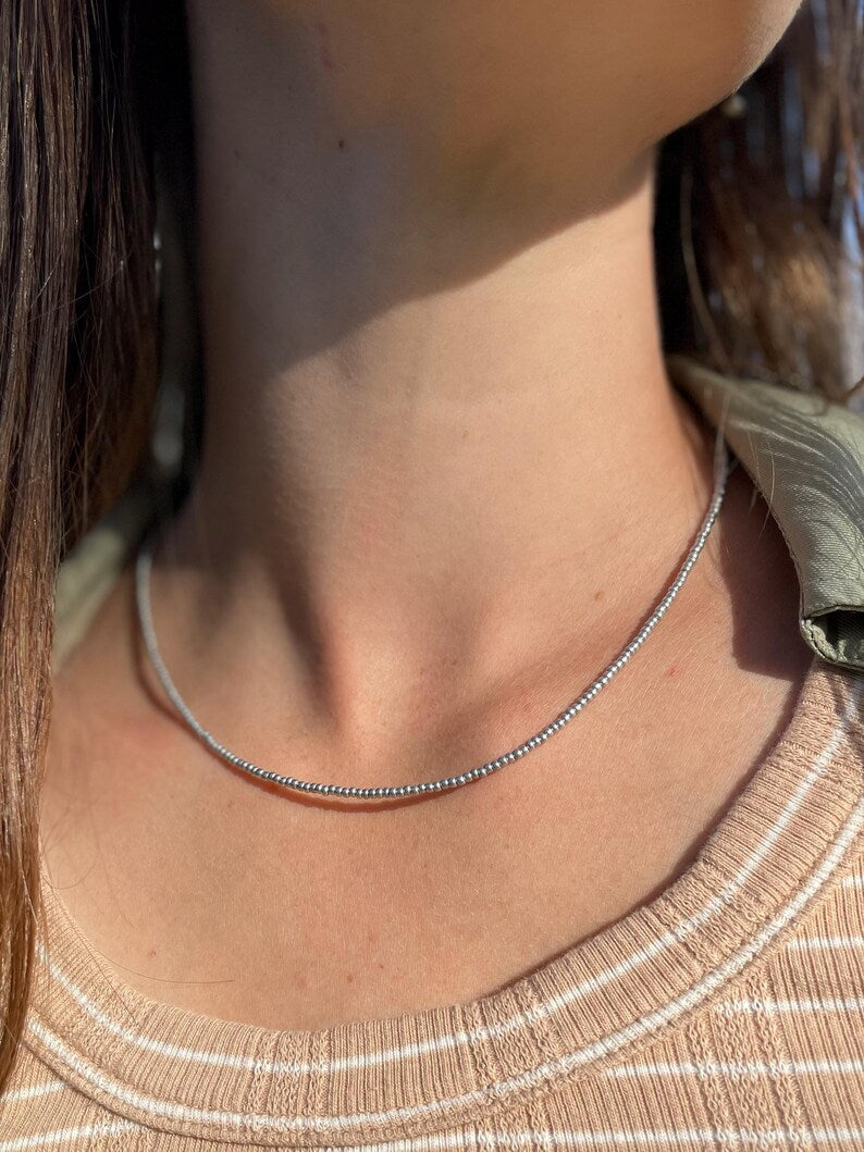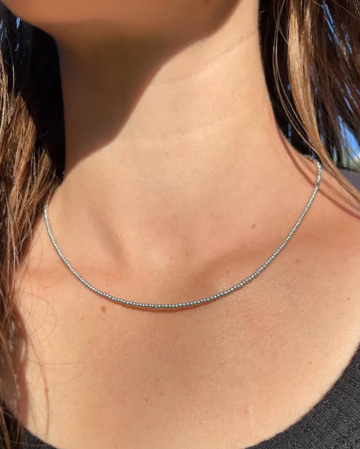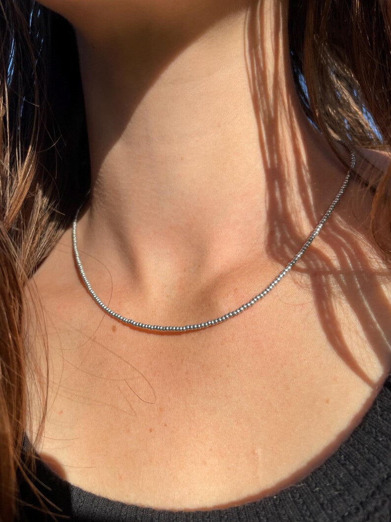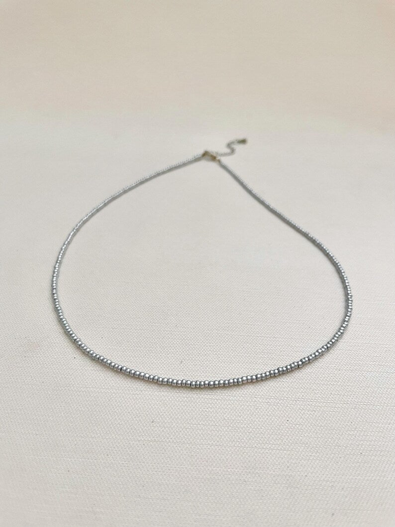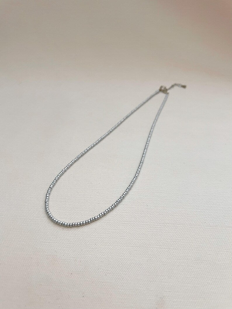 Minimalist Matte Silver Seed Bead Necklace