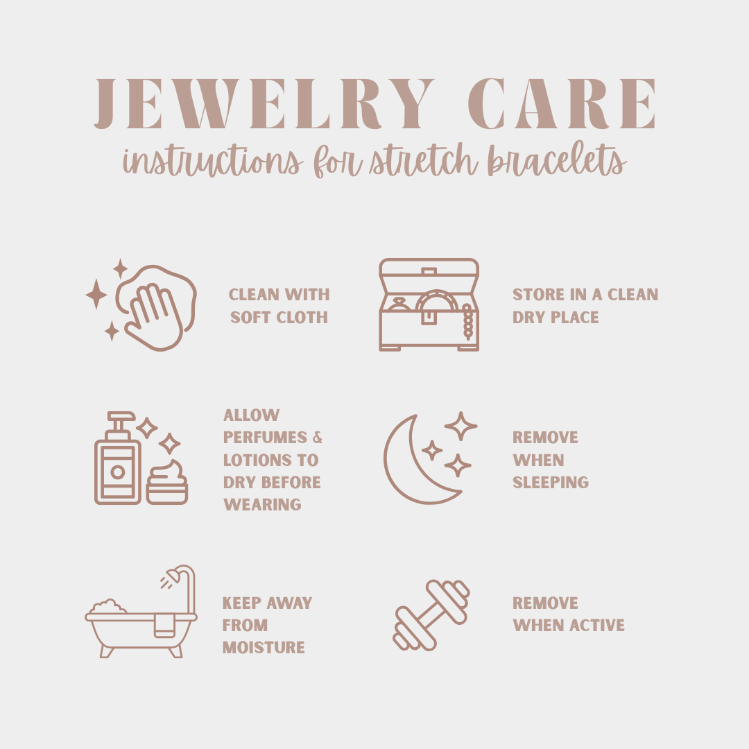 • 𝗛𝗼𝘄 𝘁𝗼 𝗺𝗲𝗮𝘀𝘂𝗿𝗲: Wrap a measuring tape (or string) around your wrist where you'd wear the bracelet. Add 0.5" for a comfortable standard fit, 1" for a looser fit, and 0.25" for a snug fit. When in doubt, size up for optimal stretch and comfort.