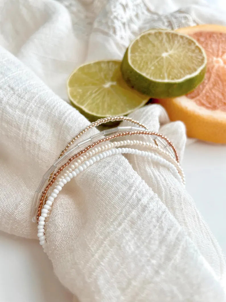 Neutral Dainty Beaded Bracelet Stack Minimalist Style Beaded Stretch Bracelet Set Everyday Wear Stacking Jewelry