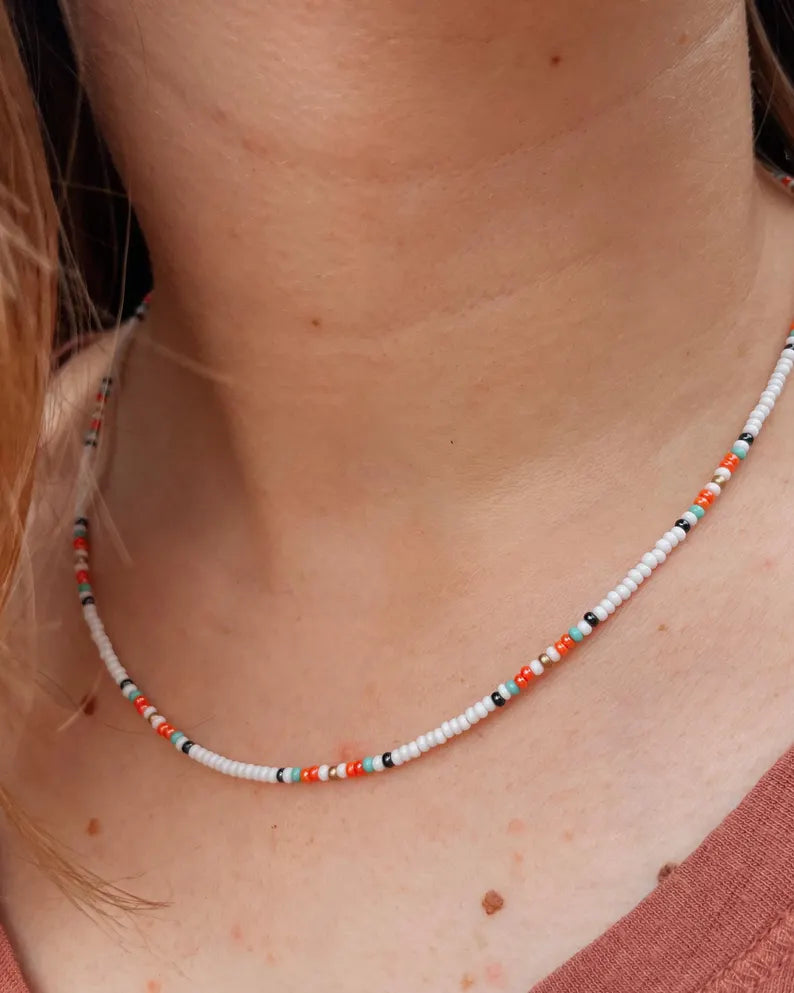 Dainty beaded surfer seed bead necklace perfect for layering or wearing alone - handcrafted with premium materials for everyday elegance, featuring a playful mix of colorful glass beads. Perfect for beach days, festival season, or adding a pop of boho charm to any outfit - this handcrafted piece brings effortless coastal elegance to your jewelry collection.
